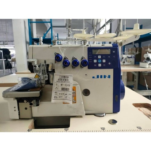Промышленный оверлок Juki JIN M1-424SF - высокопроизводительный автоматический 4-x ниточный промышленный оверлок с дифференциальным продвижением материалов и встроенным сервоприводом.