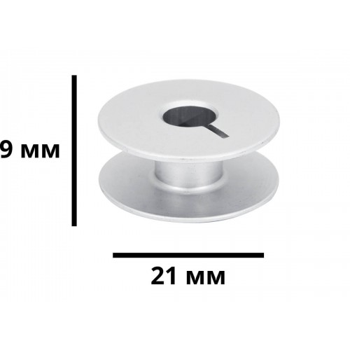 Snyter 55623A – алюминиевая шпуля с фиксатором для промышленных швейных машин со стандартным челноком. Диаметр 21 мм, высота 9 мм.